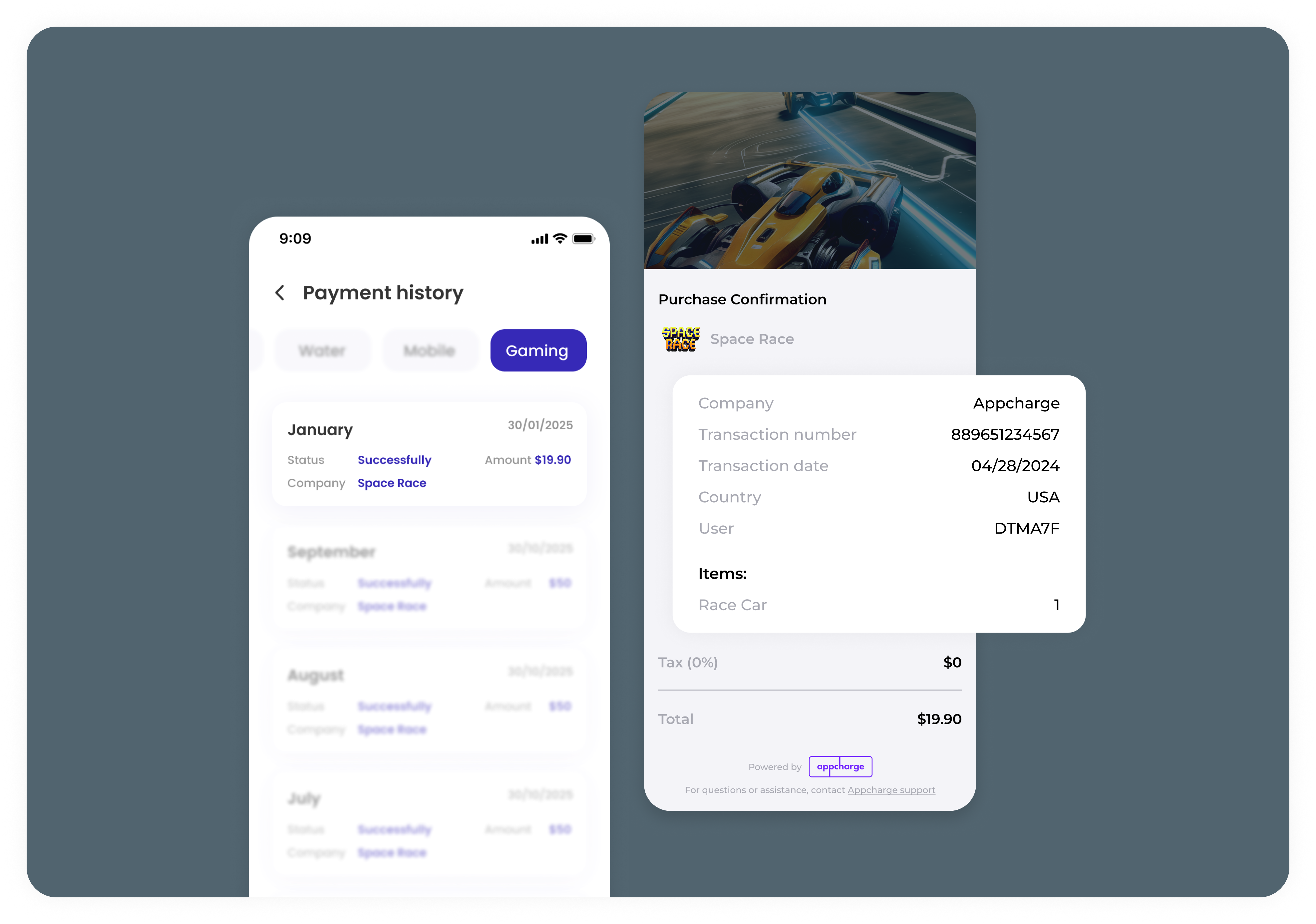 The Appcharge receipt will automatically include your game logo (the same logo you have on your Appcharge checkout/store), name of your game and a customizable header image.