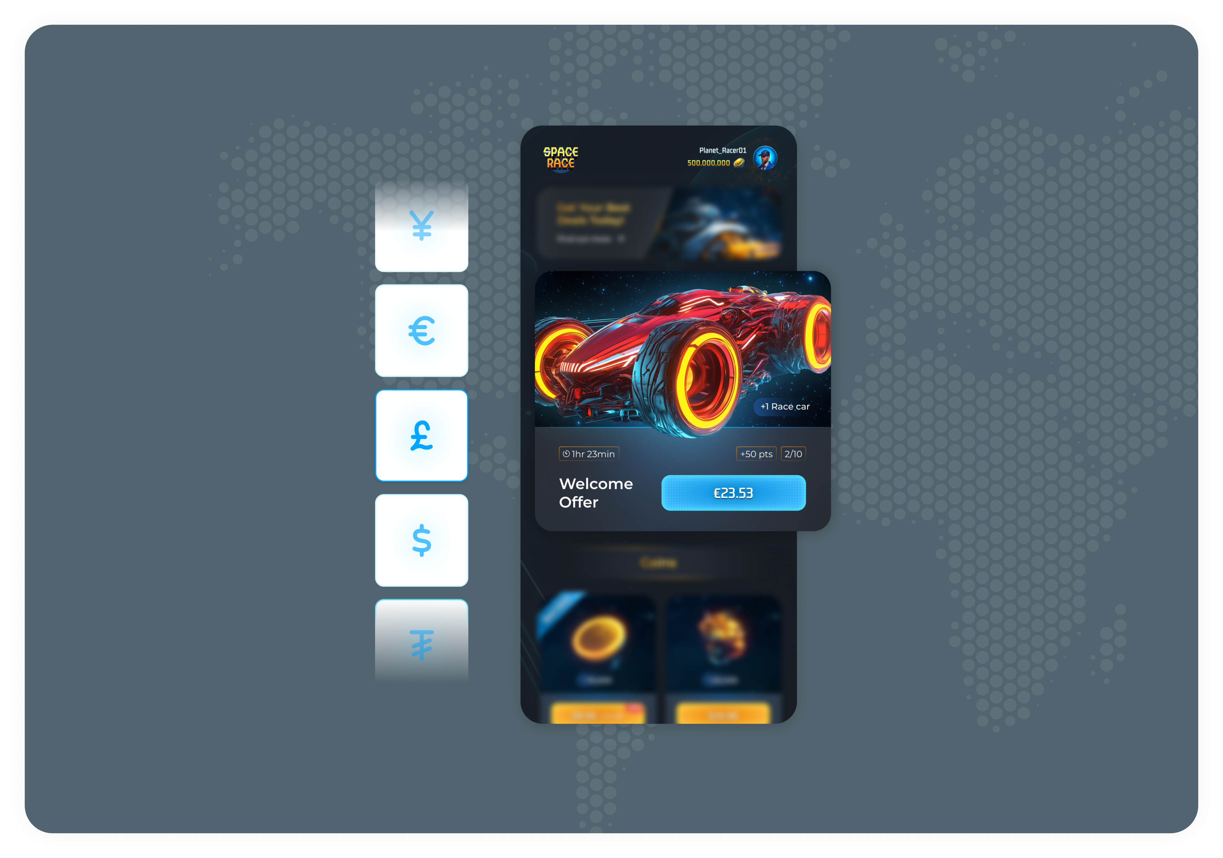 - Automatic Currency Conversion: Appcharge keeps up with real-time currency conversions, ensuring players see updated pricing at checkout based on current exchange rates.