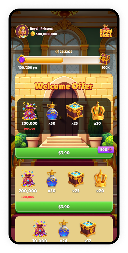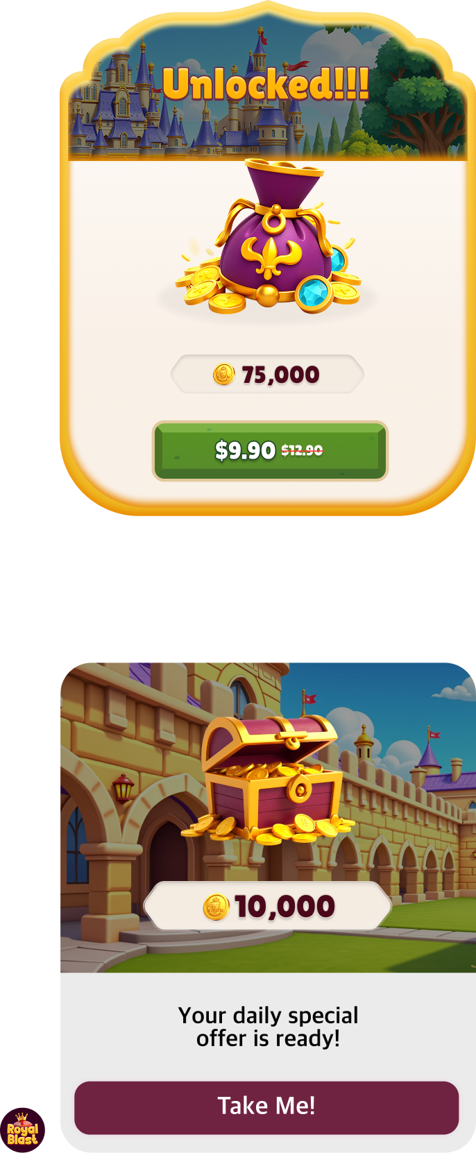 Special incentives appear as popups. They are offered immediately after a player makes a purchase to drive further engagement.