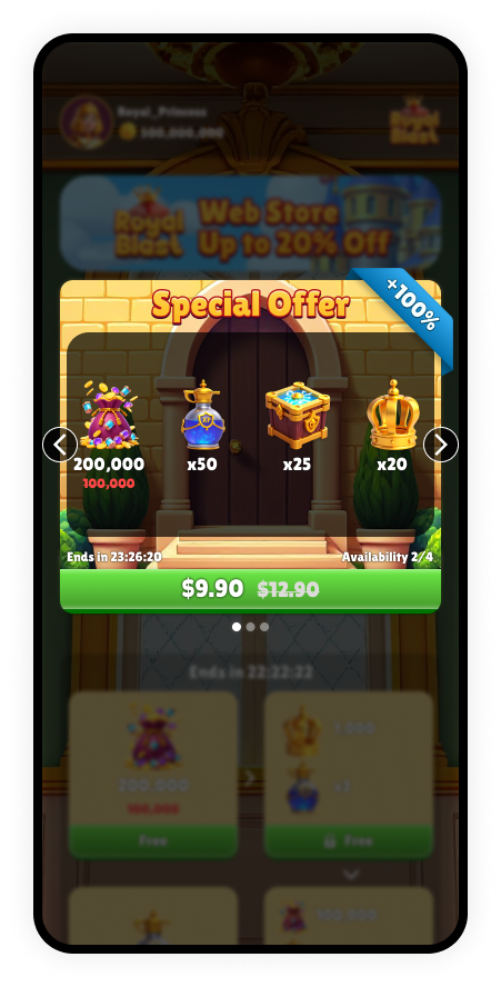 - Offer limits: Specify how many times a player can purchase each Special Offer.