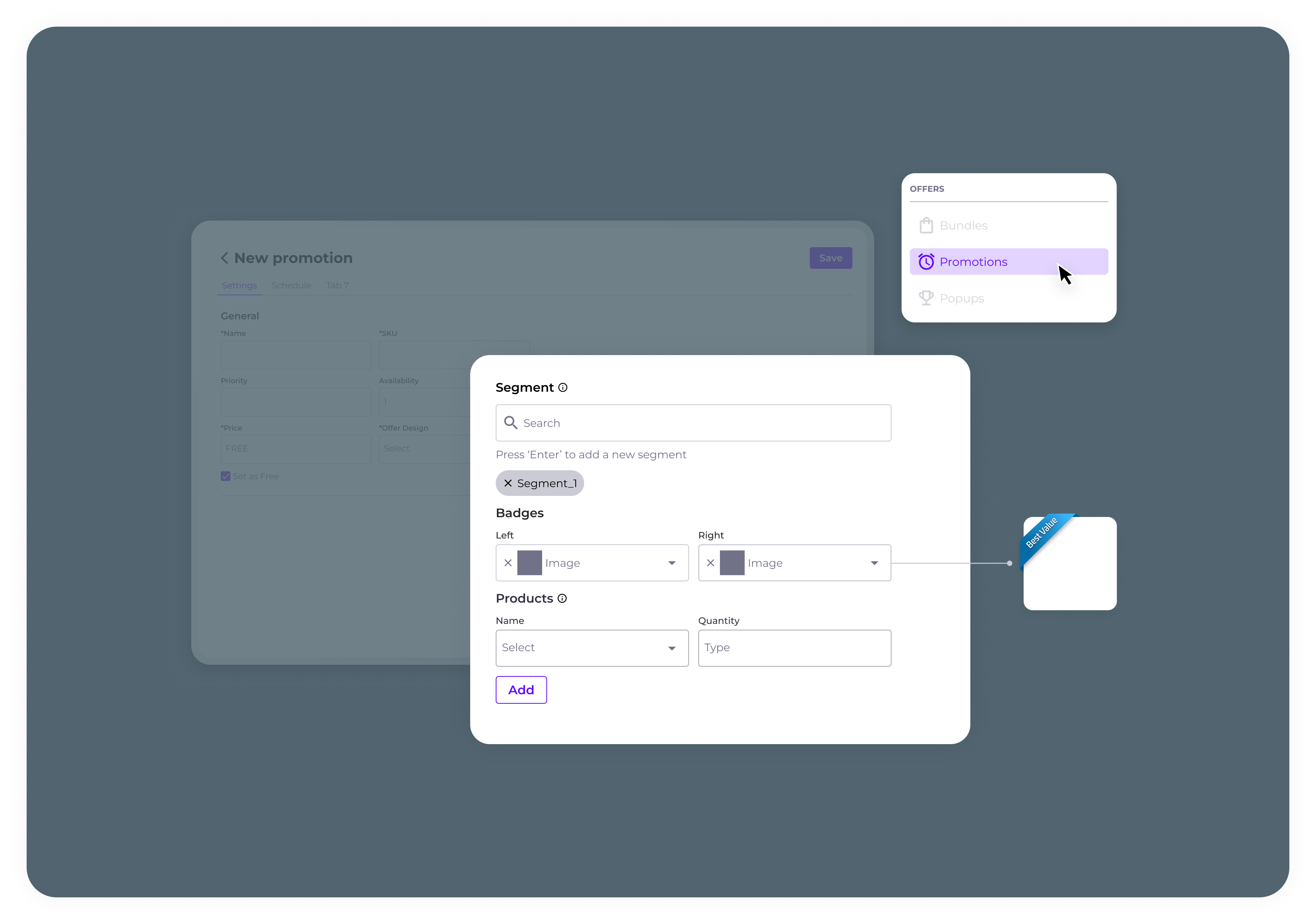 - General (Name, SKU, Availability (Optional), Offer Design, Price)
