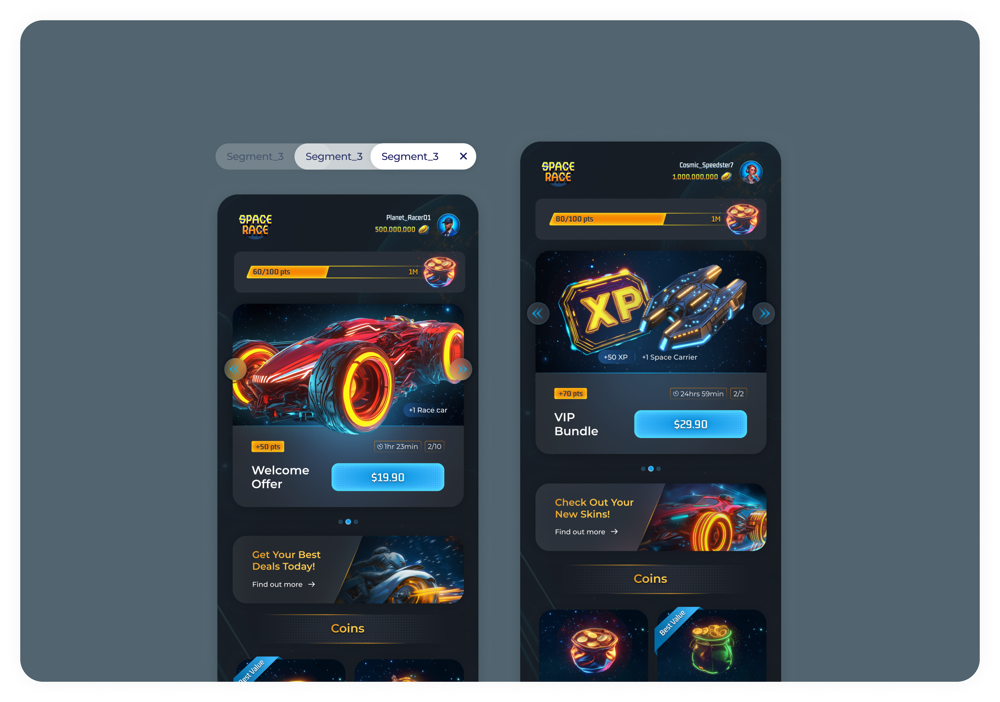 The Offers List model focuses on engaging users with timely and relevant promotions based on their classification by the game. The platform uses data analytics to determine the best offers for each player, including:- Discounts