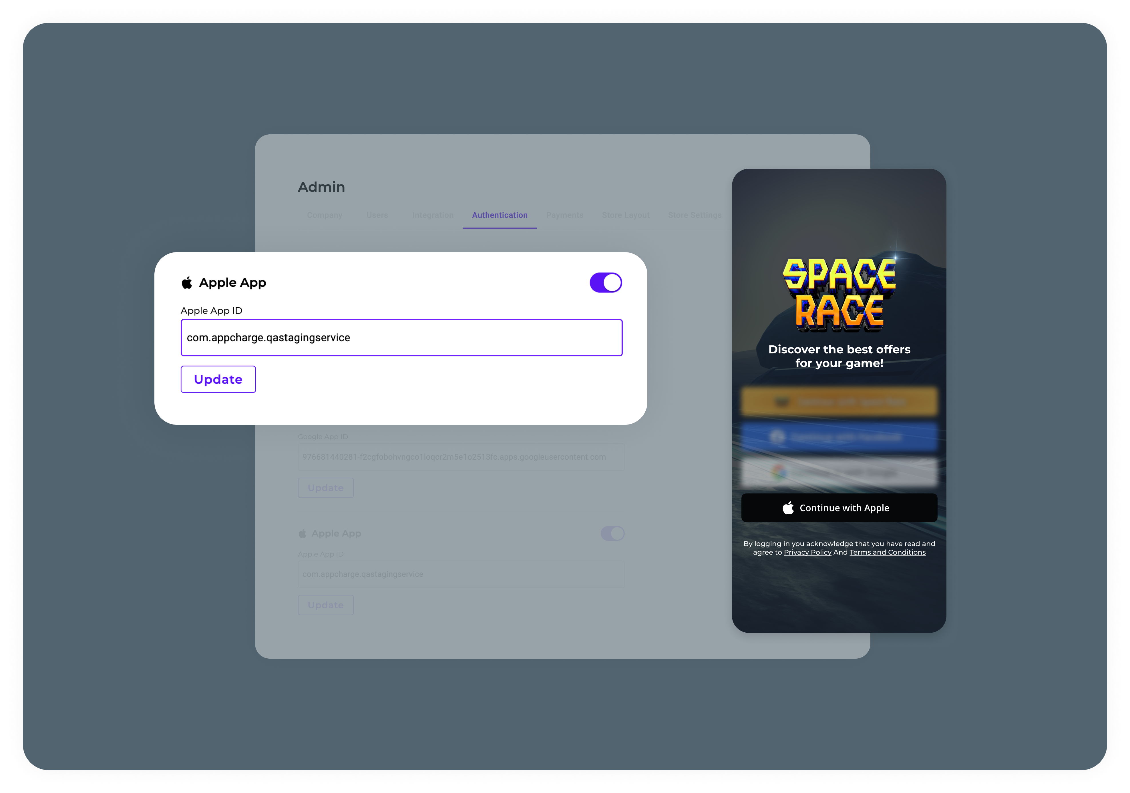 - Once a player selects this method, Apple generates a token. Apppcharge sends this token along with other login information to your Authenticate Player Callback for verification.