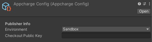 To configure the SDK:- Go to Assets > Resources > Appcharge. You should see an AppchargeConfig file. If the file doesn’t exist, create one by right-clicking the Appcharge folder and selecting Create > Appcharge > Configuration > AppchargeConfig.
